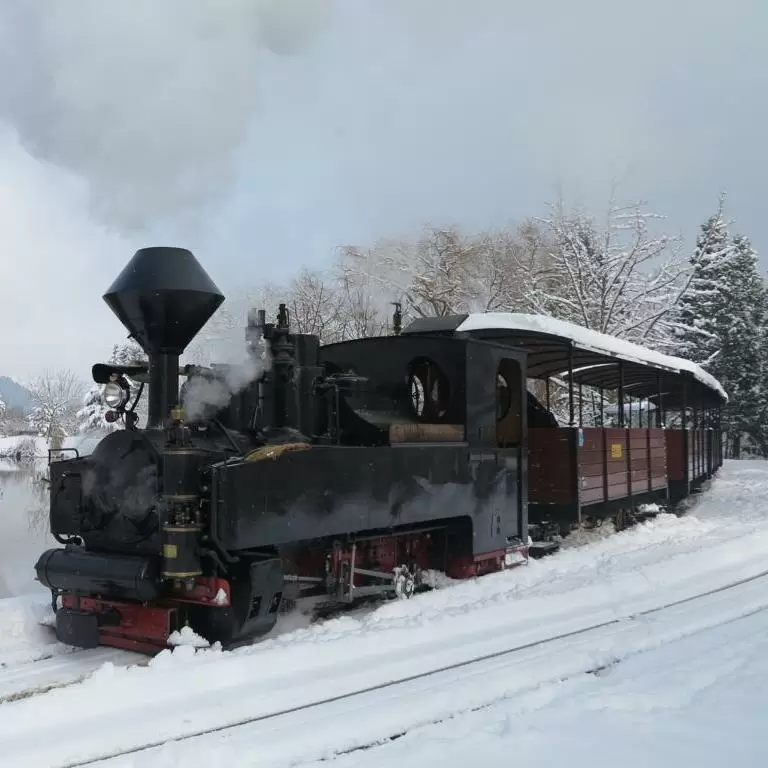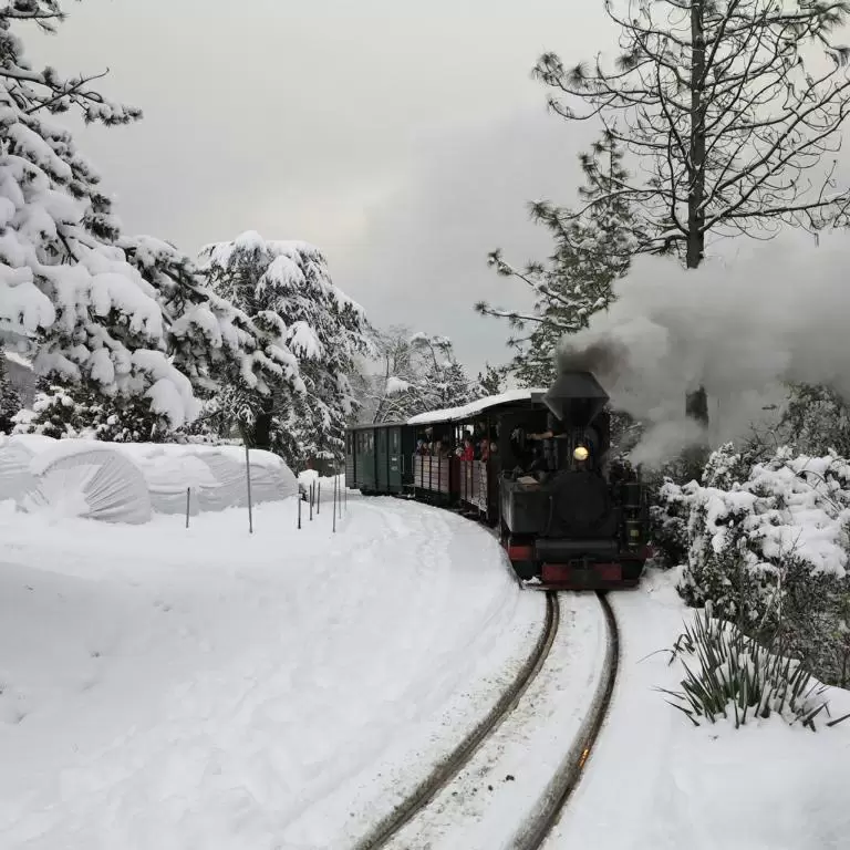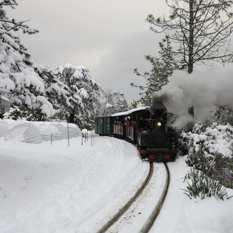 Wenn die Lokomotive durch die stille, vielleicht sogar weiss verschneite Landschaft dampft und der Rauch in den Himmel steigt, wird der Advent erst so richtig zu einem besonderen Erlebnis! Alle 30 Minuten gibts eine schnaubende Dampfbahnfahrt durch den schönen Baumschulpark und am Schluss ein feines Raclette in der Werkstatt-Beiz.