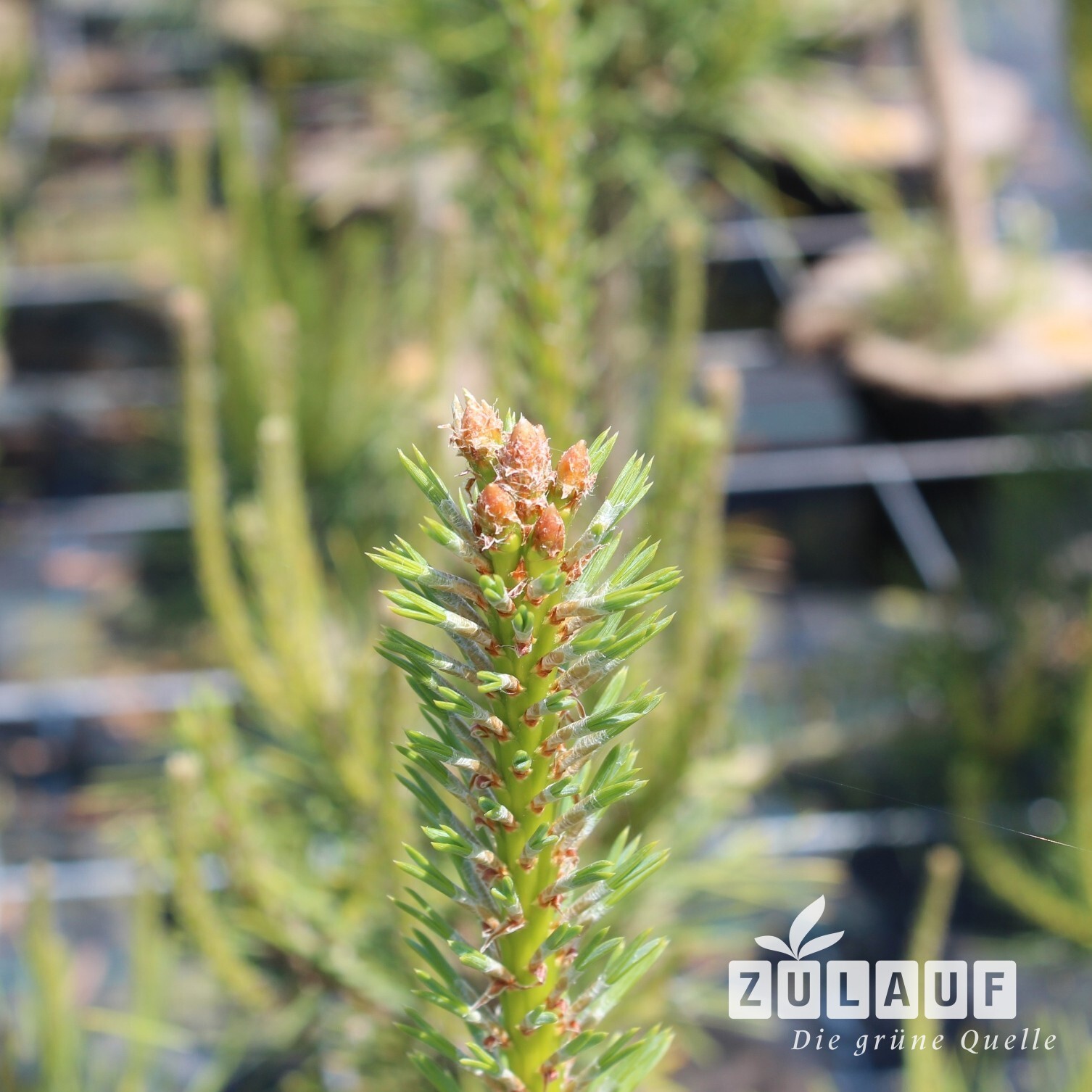 - Die Nadeln sind graugrün bis grau, häufig leicht gedreht, stechend und ca. 4 bis 8 cm lang.