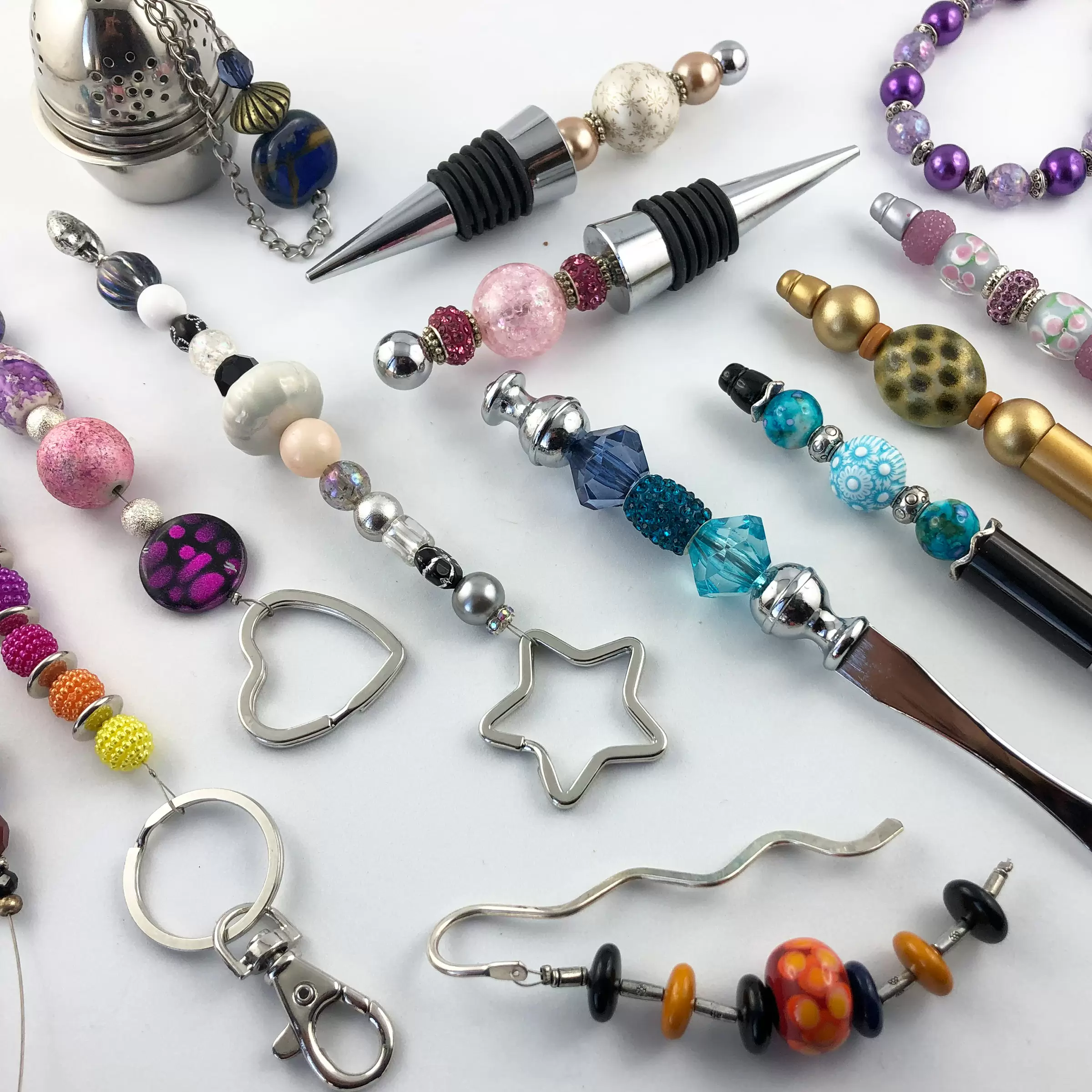 Tausend Farben, Formen und Möglichkeiten – mit Perlen lassen sich tolle Schmuckstücke und Geschenke basteln: Mit passenden Silberaccessoires ergänzt entstehen wunderschöne Buchzeichen, Kugelschreiber, Schlüsselanhänger, Brieföffner, Flaschenzapfen, Armbänder und Halsketten.