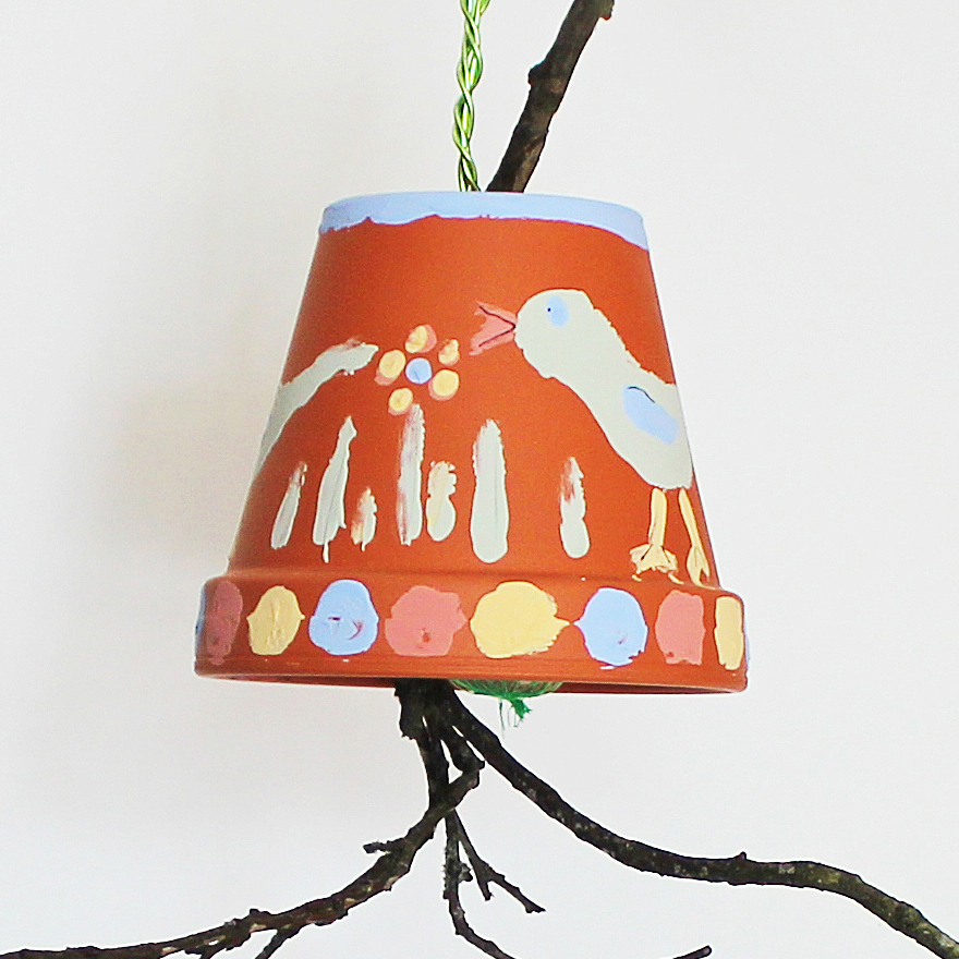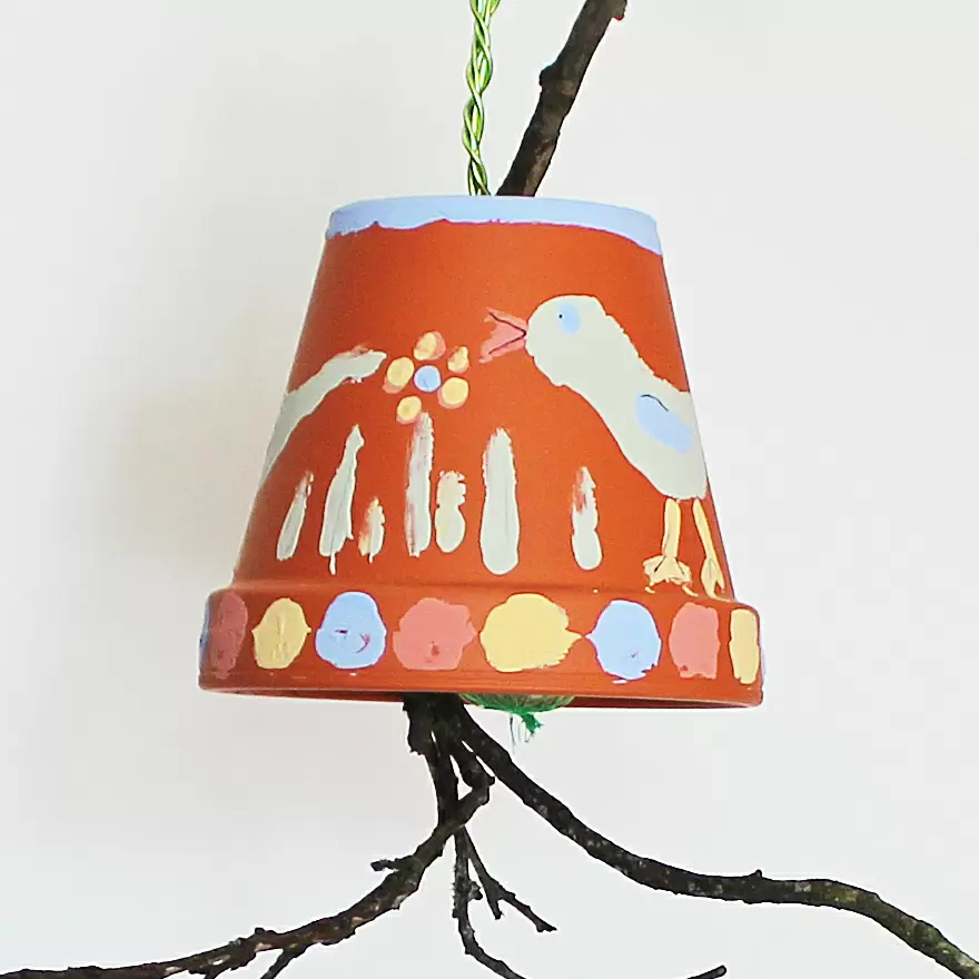 Jedes Kind darf seine eigene Vogelfutterstation basteln. Den Topf, in dem das Meisenknödel später hängt, bemalen wir zuerst mit Fingerfarben. Anschliessend wird das Ganze mit einem Ast zusammengebaut, damit die Vögel landen können zum Fressen. Eine super Vogelbeobachtungsstelle für den Winter!