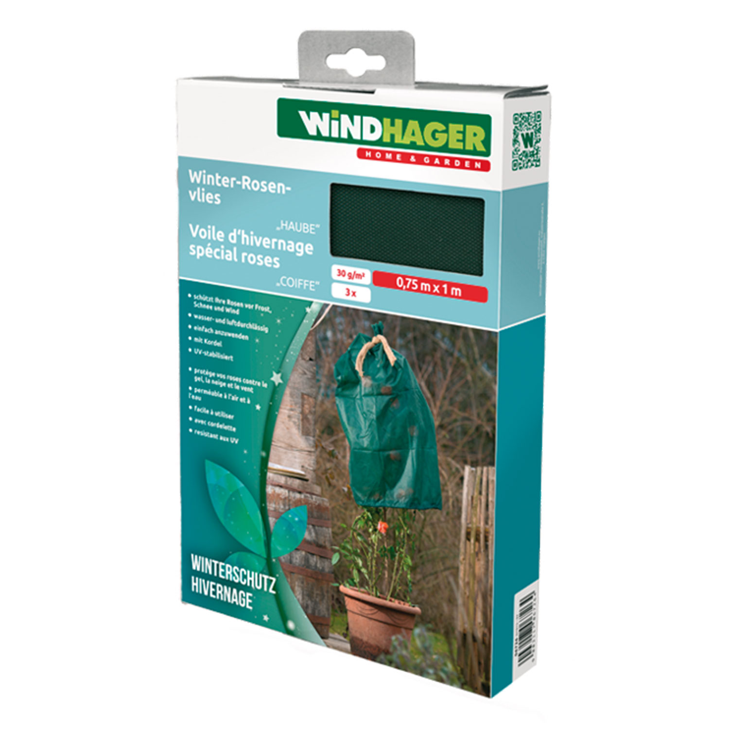 Die Winter-Rosenvlies Haube schützt Rosen vor Frost, Schnee und Wind. Durch ein natürliches Mikroklima dient es auch der Wachstumsförderung.