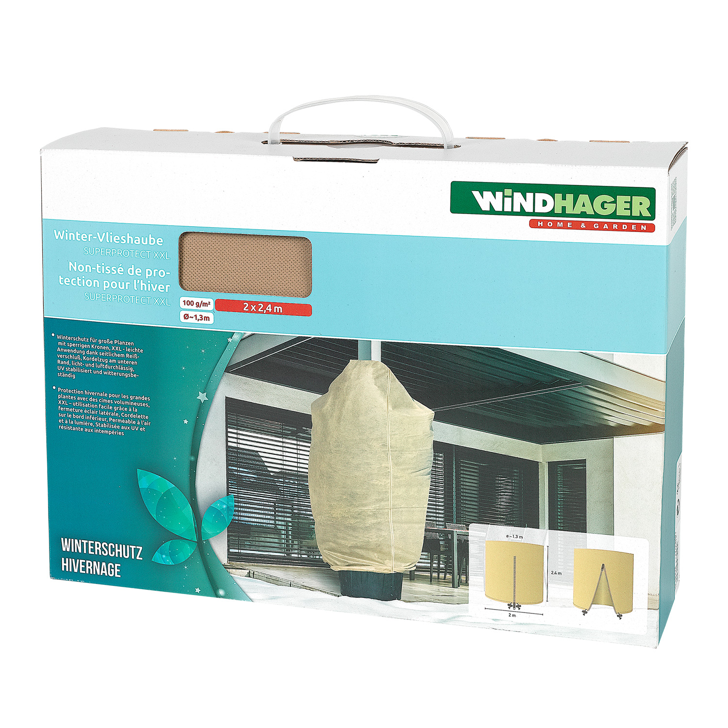 Dieser XXL Winterschutz eignet sich hervorragend für grosse Pflanzen mit sperrigen Kronen. Der Winterschutz ist leicht in der Anwendung dank seitlichem Reissverschluss und Kordelzug am unteren Rand. Dieser Winterschutz ist Licht- und Luftdurchlässig, UV stabilisiert und witterungsbeständiig.