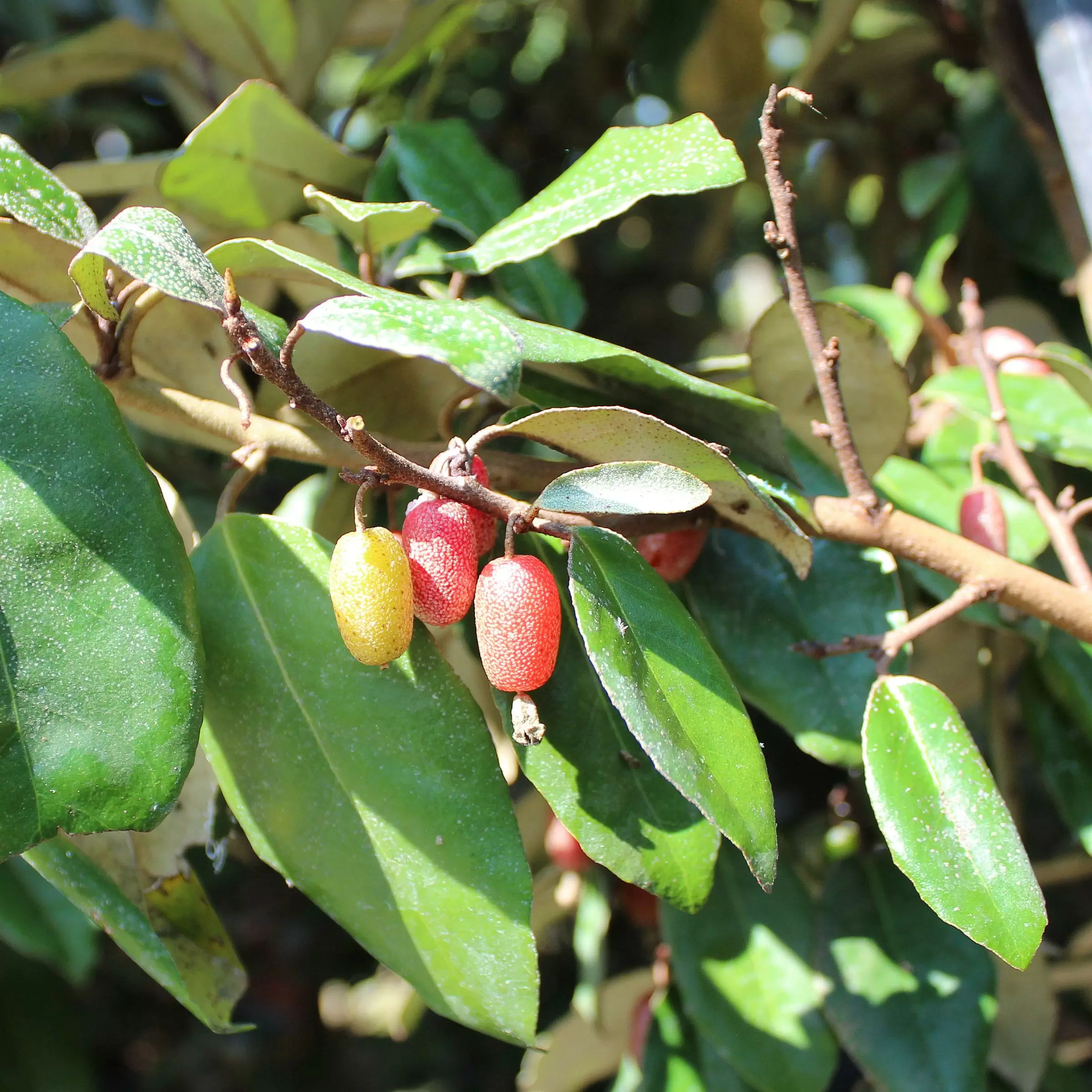 Die Ölweide ist ein hoher, straff aufrecht wachsender Strauch mit dunkelgrün glänzenden Blättern und kleinen, gelben, fast unscheinbaren, duftenden Blüten.