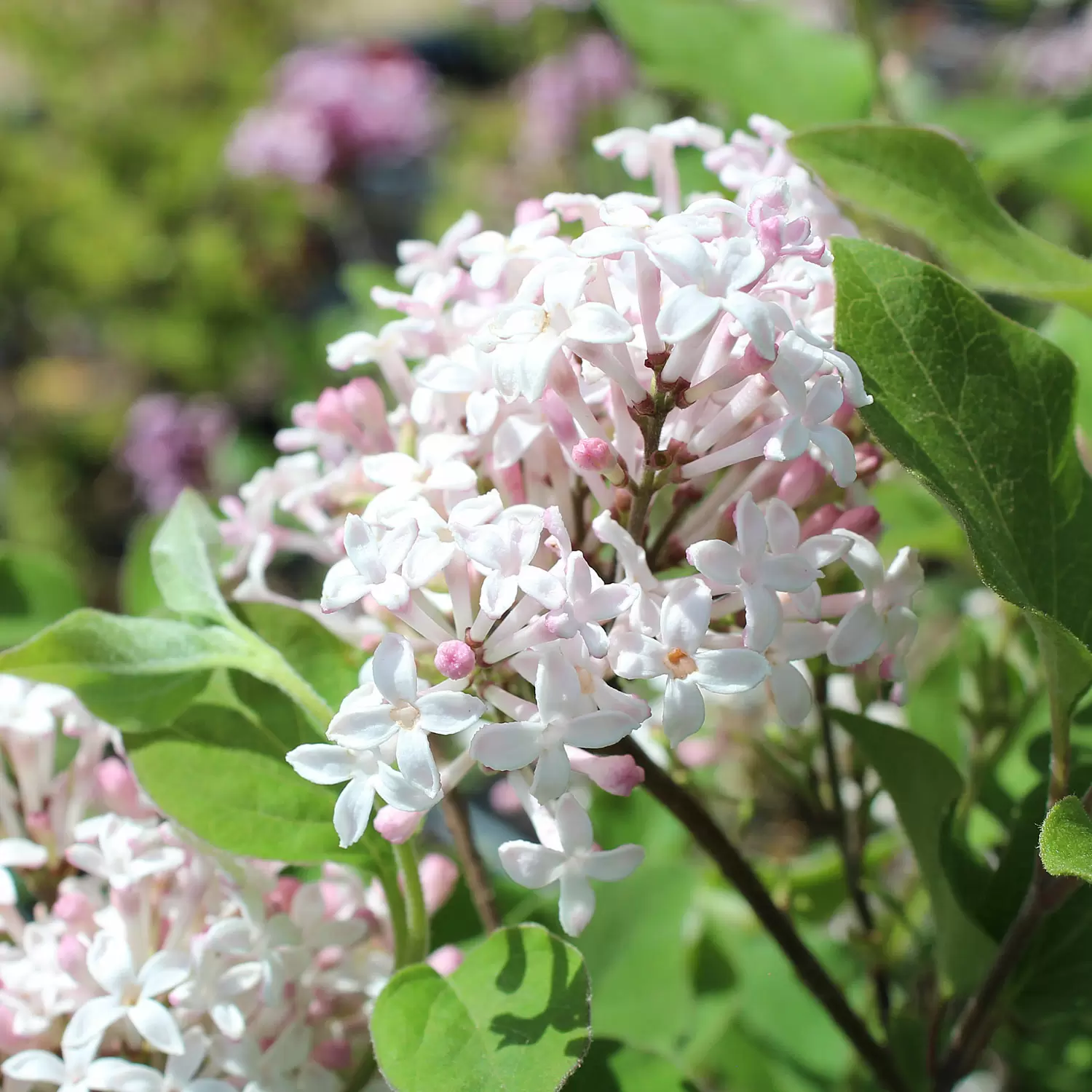 Der hübsche Zwerg-Duft-Flieder 'Flowerfesta 'White' (Syringa Flowerfesta® 'White') ist die erste Zwerg-Fliedersorte mit fast reinweissen Blüten. Im Frühling sind die Röhrenblüten rosa und verblassen mit den steigenden Temperaturen und dem vollständigen Aufblühen zu einem imposanten Weiss. Bei kühleren Temperaturen behalten sie ihren hübschen rosa Schleier, der vor allem auf der Aussenseite und den unteren Blüten erkennbar ist.
